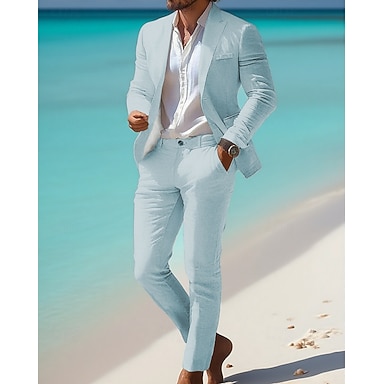 Hombre Blazer de lino Conjunto Negocio Fiesta de Cóctel Fiesta de Boda Moda Casual Primavera Otoño 30% lino 60% poliéster Plano Bolsillo 2 Piezas Cómodo Botonadura Simple Chaqueta de sport Blanco
