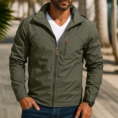 Hombre Chaqueta al aire libre Chaqueta de transición Ropa Cotidiana Resistente al Viento Secado rápido Primavera & Otoño Color sólido Casual / Diario Diseño Regular Holgado Negro Azul Piscina Caqui