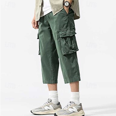 Hombre Pantalones tipo cargo Pantalón Corto Cargo Pantalón corto Pantalones cortos casuales Bolsillo Cintura elástica Plano Longitud de la rodilla Casual Exterior Ropa de calle Moda Ropa de calle