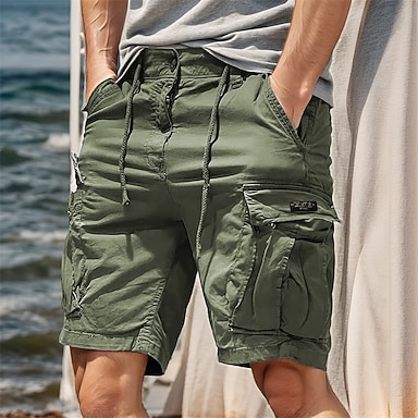 Hombre Pantalón Corto Cargo Pantalón corto Pantalones cortos de verano Correa Cintura elástica Multi bolsillo Plano Comodidad Listo para vestir Longitud de la rodilla Exterior Deporte Diario Moda