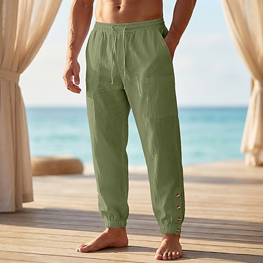 Hombre Pantalones de lino Pantalones Pantalones de verano Pantalones anchos Pantalones Cortos Correa Cintura elástica Plano Comodidad Transpirable Longitud total Casual Diario Exterior Vacaciones Moda