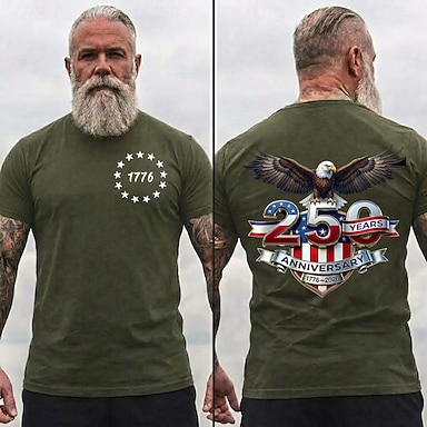 4 de julio de 2026 250 ° Día de Conmemoración Camiseta de manga corta de cuello redondo para hombre Patriota Patriótico Veterano