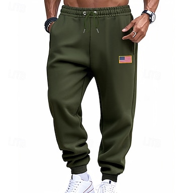 Hombre Pantalones deportivos Pantalones de Deporte Persona que practica jogging Pantalones Bolsillo Cintura elástica Correa Bandera estadounidense Comodidad Deporte Diario Moda Casual Negro Amarillo