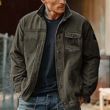 Hombre Chaqueta utilitaria Chaqueta tipo cargo Chaqueta casual Vacaciones Diario Resistencia al desgaste Bolsillo delantero Primavera Otoño Plano Moda Clásico Escote Chino Regular Negro Caqui Verde