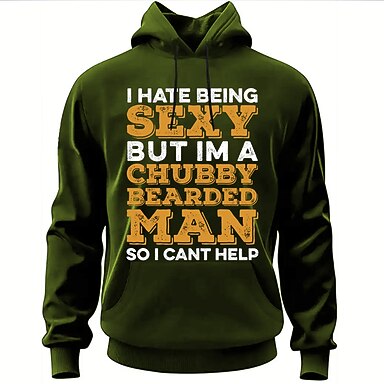 Sudadera con Capucha Divertida para Hombre "Odio Ser Sexy Pero Soy un Hombre Gordo y Barbudo" Gráfica de Estilo de Vida