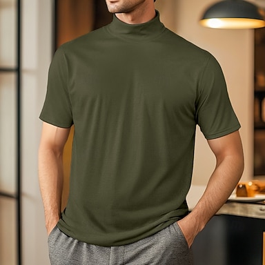 Hombre Camiseta Suéter de cuello de tortuga Manga Corta Cuello Alto Verano Primavera Plano Moda Casual Cómodo Suave Hogar Casual Fin de semana Negro Blanco Gris Camiseta superior para hombre