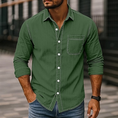 Hombre Camisa Camisa casual camisa de la vendimia Abotonar la camisa Negro Verde Claro Vino Azul Marino Azul Piscina Manga Larga Plano Diseño Casual Noche Bolsillo Ropa Vintage Moda Retro Antiguo