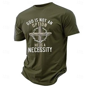 Hombre Letra Cruz Jesús Camiseta Camiseta superior 100% Algodón Manga Corta Gráfico Camisa Negro Verde Ejército Azul Oscuro Camiseta cómoda Calle Deporte Ropa de diseñador de moda