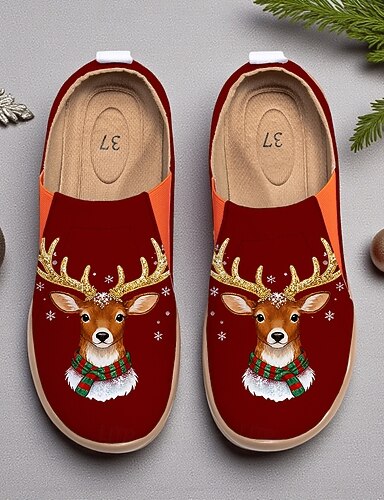 Zapatos de viaje de lona con diseño de reno y punta ancha para mujer: bonitos zapatos para caminar en Navidad, perfectos para viajes de vacaciones y ropa urbana de invierno.