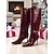 Botas altas hasta la rodilla de piel sintética charol burdeos para mujer con detalle de hebilla dorada, punta puntiaguda, elegante tacón de aguja, perfectas para Navidad, fiestas navideñas y ocasiones festivas.