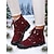 Botas vaqueras bordadas de piel sintética roja para mujer con diseño floral, tacón de bloque, estilo retro western, perfectas para festivales, salidas informales y Navidad.