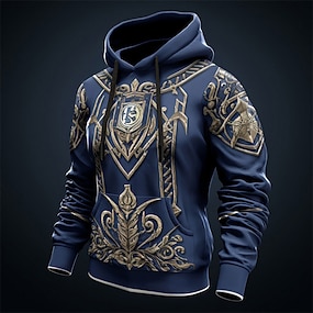 Hombre Graphic Armadura Sudadera Sudaderas Moda Diario Básico Casual Manga Larga Con Capucha Carnaval Vacaciones Deporte Festivos Ropa de calle Morado Marrón Verde Trébol Azul Oscuro Estampado