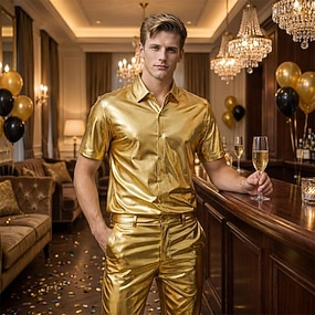 Retro Antiguo Años 70 Años 80 Camisas Disco Metálico Brillante Disfraz Hombre Disfraz de carnaval Navidad Víspera de Todos los Santos Carnaval Discoteca Fiesta temática Desfile del orgullo Adulto