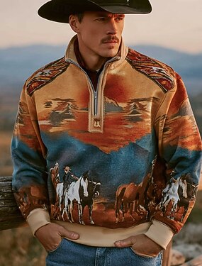 Hombre Cowboy Sudadera Étnico retro de la vendimia Manga Larga Escote Chino Exterior Trabajo Regalo Marrón Cremallera Otoño Invierno Diseñador S M L XL XXL XXXL