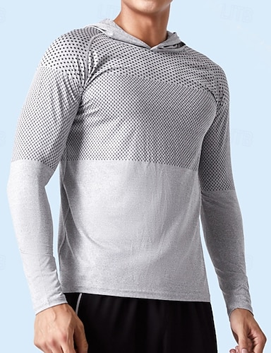Hombre Camiseta de rendimiento Camiseta deportiva Manga Larga Con Capucha Camiseta Al aire libre Secado rápido Reductor del Sudor Antiolor Transpirable Primavera Otoño Poliéster Gris oscuro Azul Gris