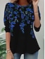 Mujer Camiseta Estampado Floral Graphic Plantas Bohemia Vintage Elegante Manga Larga Cuello Barco Escote Redondo Tops regulares Diario Fin de semana Ropa de vacaciones Negro Verano Primavera Otoño
