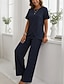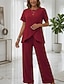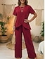 Mujer Camiseta Conjuntos de pantalones parte superior del bolero Manga Corta Cuello Barco Escote Redondo Color sólido Moda Ropa de calle Diario Exterior Vacaciones Rojo Azul Marino Verde Trébol Verano
