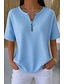 Mujer Sayo Color sólido Elegante Vintage Clásico Media Manga Escote Redondo Tops regulares Diario Fin de semana Azul Piscina Naranja Verano Primavera