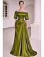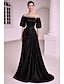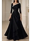 Corte A Hasta el Suelo Vestidos de noche Vestido de baile con sobrefalda Vestimenta formal Elegante Reluciente Manga 3/4 Hombros Caídos Boda Formal Satén Tafetán con Pedrería Brillante Con Cuentas