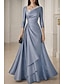 Corte A Hasta el Suelo Vestidos de noche Corte Cenicienta Vestimenta formal Elegante A Capas Manga 3/4 Escote en Pico Boda Formal Satén con Pedrería Volantes Un Color