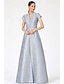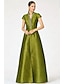 Corte A Hasta el Suelo Vestidos de noche Corte Cenicienta Vestimenta formal Elegante Reluciente Sedoso Manga Corta Escote en Pico Boda Formal Satén con Pedrería