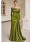 Corte Trompeta Sirena Cola barrida Trajes de gala Vestidos de noche Corte Cenicienta Vestimenta formal Estilo de Celebridad Lujoso Brillos Y Estrellas Manga Larga Joya Carnaval Navidad Satén con