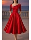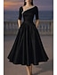 Corte A Vestido Midi Vestidos de coctel Elegante Vestidos semi formales Media Manga Escote en Pico Fiesta de jardin Boda Bolsillo Satén elástico con Pedrería Plisado Cuentas
