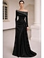 Corte A Hasta el Suelo Vestidos de noche Corte Cenicienta Vestimenta formal Elegante Manga Larga Un Hombro Boda Formal Capas Satén con Pedrería