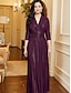 Corte A Hasta el Suelo Vestido Invitada Boda Vestido formal Vestido de noche Vestido de Madrina Manga Larga Escote en Pico Elegante Brillos Y Estrellas Formal Fiesta de Boda Brillante con Plisado