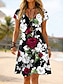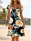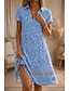 Mujer Vestido hasta la Rodilla Vestido de verano Vestido estilo camiseta Vestido de una línea Vacaciones Casual Boho Playa Ajuste regular Floral Graphic Manga Corta Escote en Pico Azul Piscina Rosa