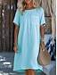 Mujer Vestido hasta la Rodilla Algodón Compuesto Vestido informal Vestido de Algodón Vestido estilo camiseta Moda Moderno Diario Vacaciones Noche Holgado Plano Manga Corta Cuello Barco Azul Piscina