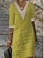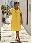 Mujer Vestido hasta la Rodilla Lino de algodón sintético Vestido de lino de algodón Elegante Moda Moderno Diario Exterior Vacaciones Holgado Plano Manga Corta Escote en Pico Amarillo Rosa Vino Verde