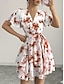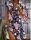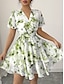 Mujer Vestido hasta la Rodilla Vestido informal Vestido de flores Elegante Moda Moderno Exterior Vacaciones Noche Ajuste regular Floral Manga Corta Escote en Pico Rojo Azul Marino Verde Trébol Verano