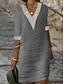 Vestido de mujer de lino sintético de algodón hasta la rodilla, vestido de verano informal, vestido lencero, moda básica moderna, diario, vacaciones, salidas, corte holgado, liso, sin mangas, cuello