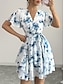 Mujer Vestido hasta la Rodilla Vestido informal Vestido de flores Vestido de verano Elegante Moda Moderno Exterior Vacaciones Noche Ajuste regular Floral Manga Corta Escote en Pico Azul Piscina