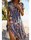 Mujer Vestido hasta la Rodilla Vestido de una línea Vacaciones Casual Boho Playa Ajuste regular Floral Graphic Manga Corta Escote en Pico Azul Piscina Rosa Morado Verde Trébol Verano Primavera