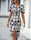 Mujer Vestido hasta la Rodilla Vestido tubo Vestido de raso Vestido Estampado Elegante Moda Exterior Vacaciones Noche Ajuste regular Graphic Manga Corta Escote en Pico Vino Verano Primavera