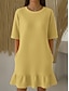Mujer Vestido hasta la Rodilla Vestidos Peplum Moda Clásico Diario Exterior Holgado Plano Media Manga Cuello Barco Amarillo Claro Verde Oscuro Naranja Verano Primavera