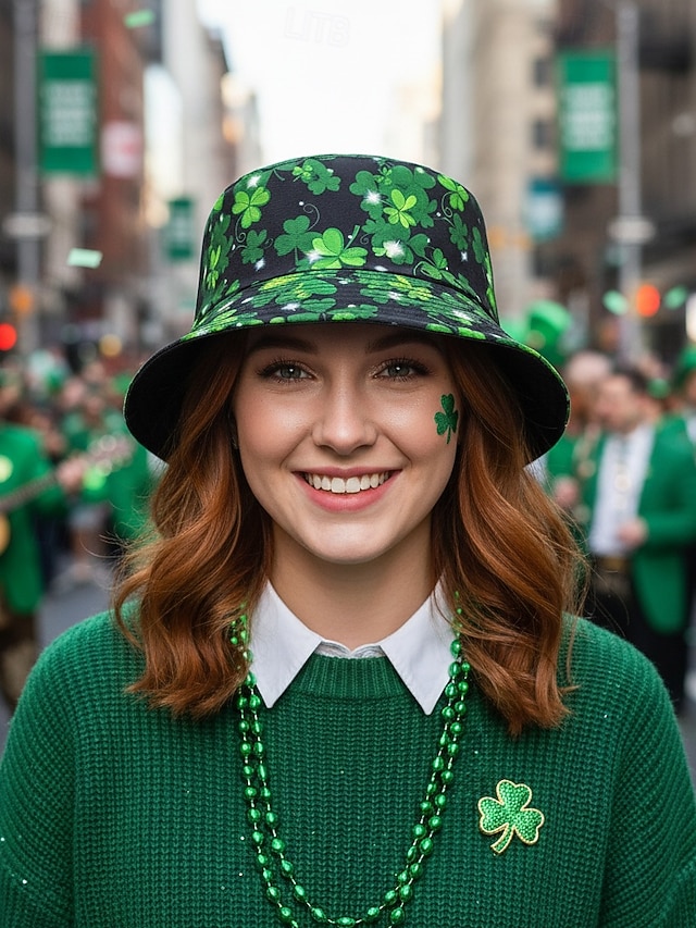 Sombrero de pescador con estampado de trébol verde para mujer: divertido y elegante para el Día de San Patricio, festivales y ropa informal.#10294639