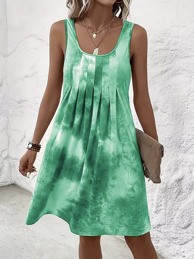 Mujer Mini vestido Vestido de verano Vestido de una línea Vestido sin tirantes Vacaciones Casual Playa Noche Ajuste regular Graphic Tie-dye Abstracto Sin Mangas Escote en U Azul Piscina Rojo Verde #11171898