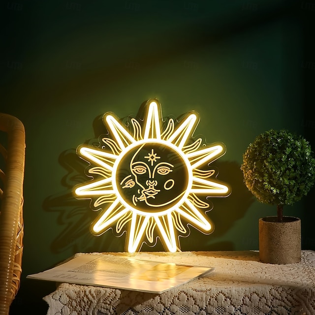 Letrero de pared LED de neón con diseño de sol y luna, luz cálida, alimentado por USB, regulable, 32x32 cm, lámpara LED decorativa para dormitorio, sala de estar, sala de juegos, fiesta, bar, cueva de#12179527