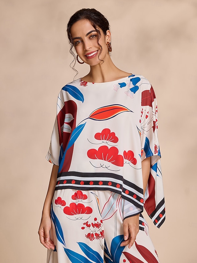 Mujer Floral Casual Casual Diario Manga magiar Albaricoque Dobladillo irregular De Gran Tamaño Estampado Manga 3/4 Elegante Diario Escote Barco Primavera & Otoño Otoño Temporadas Cruzadas #12212087
