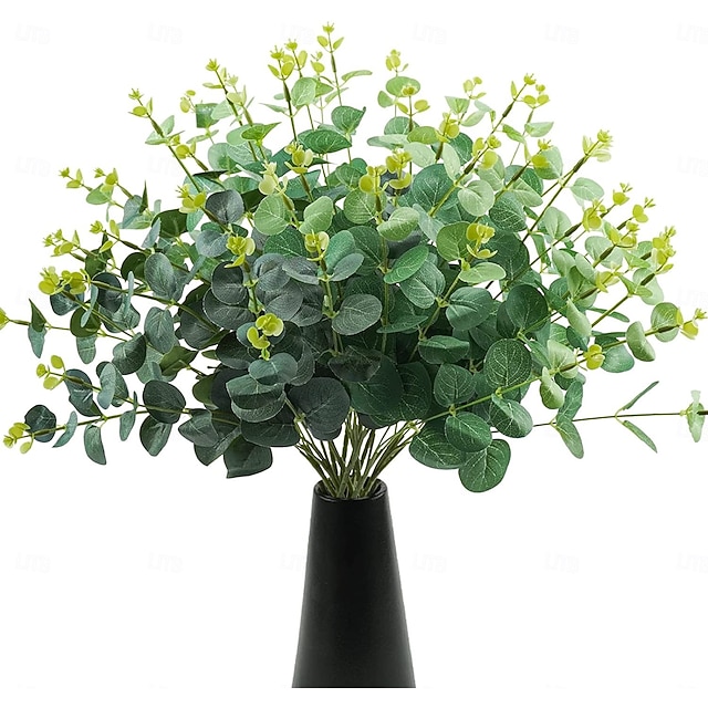 4 paquetes de tallos de eucalipto artificiales, hojas de eucalipto dólar de plata falsas, ramas verdes para arreglos florales. &decoración del hogar#12709912