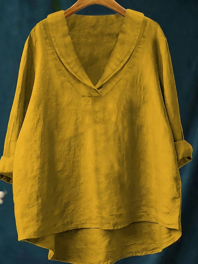 Mujer Camisa Camisas de algodón y lino Lino de algodón sintético Retazos Plano Elegante Clásico Moderno Manga Larga Escote en Pico Tops regulares Diario Festivos Noche Negro Blanco Amarillo Rojo Azul #13641878