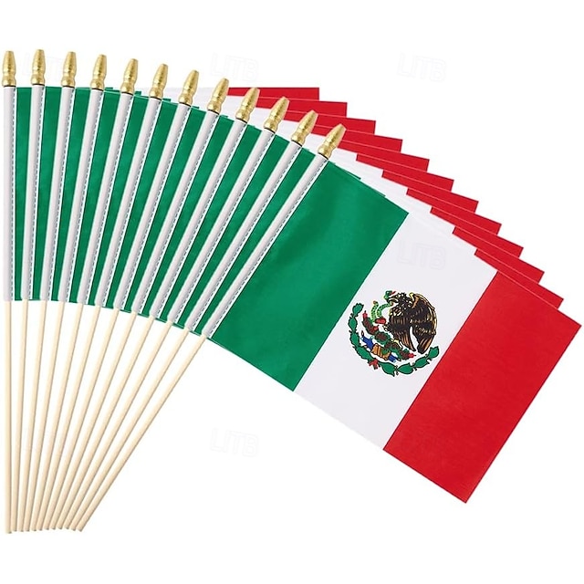 Paquete de 25 banderas pequeñas de México, mini banderas mexicanas portátiles en palo de 5 x 8 pulgadas para partidos de la Copa Mundial de Fútbol de verano, eventos deportivos, decoraciones de fiesta#14126571