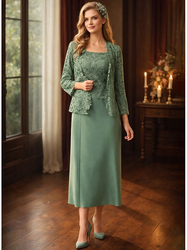 Conjuntos de vestidos Vestido de invitada de boda largo hasta el suelo Vestido de la madre de la novia Manga larga Cuello redondo Elegante Simple Invitada de boda con color sólido#14576276