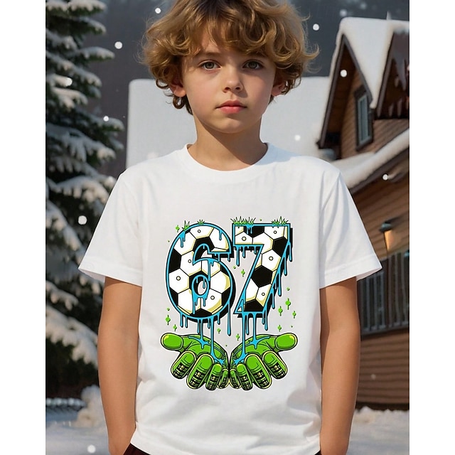 Algodón Niños Chico Negro Blanco Graphic Fútbol Americano Jerga divertida 67 Camiseta Blusa Cuello Barco Manga Corta Exterior Uso Diario Moda Ropa de calle Design Estampado Verano #14719272