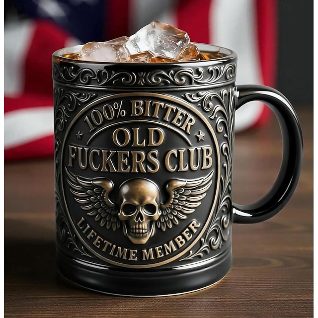 Taza de miembro vitalicio del Old F*ckers Club, taza de café de cerámica de 10 oz con diseño de esqueleto vintage, artículos para beber con humor atrevido para uso diario, regalo de broma para#15711568