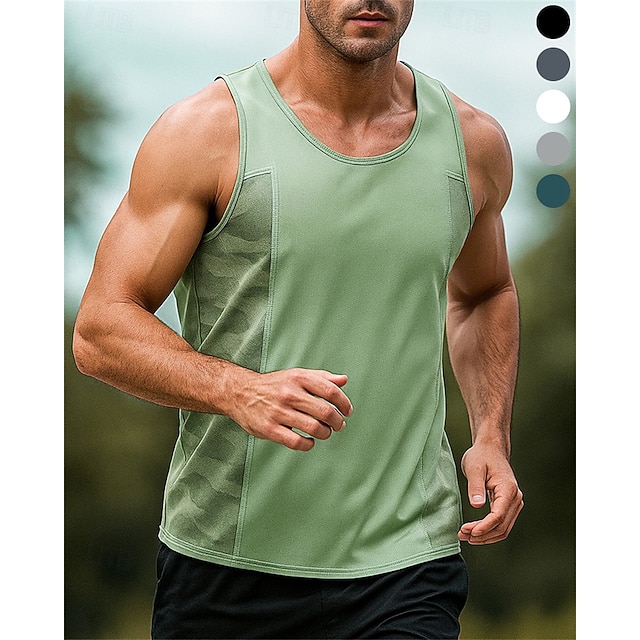 Sexo:Hombre,Categoría:Top para correr,Camiseta sin mangas Running,Camiseta para correr,Tipo:Camiseta,Actividad:Golf,Tenis,Corriendo,Ocasión:Exterior,Deportes,Temporada:Verano,Primavera,Tipo de Ajuste:Ajuste regular,Elasticidad:Microelástico,Función:Secado rápido,Ligero,Transpirable,Tejido:Poliéster,Longitud de la Manga:Sin Mangas,Escote:Cuello Barco,Diseño:Bloque de color,Color Camuflaje,Delicado:Limpieza húmeda y en seco,Lavable,Busto (cm):S:96;M:100;L:104;XL:110;XXL:116,Longitud (cm):S:66;M:68;L:70;XL:72;XXL:74,