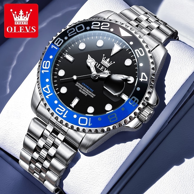 OLEVS 5657 relojes de cuarzo de lujo regalo para hombres marca top reloj de vestir mecánico automático luminosa con calendario de acero inoxidable#19564329